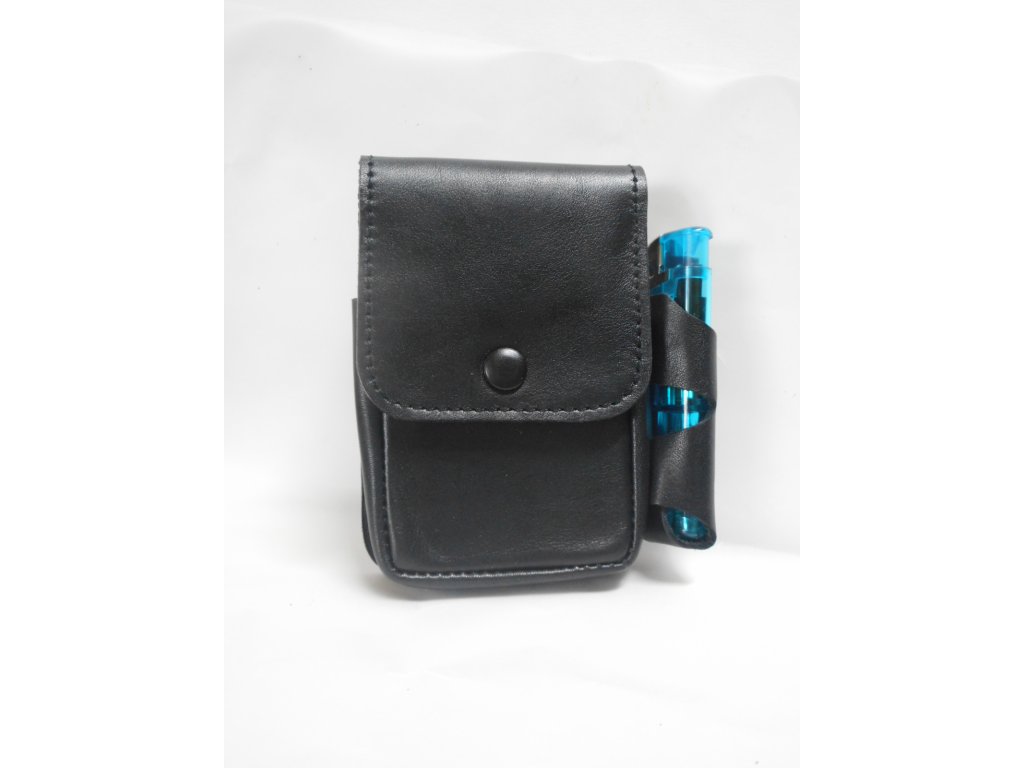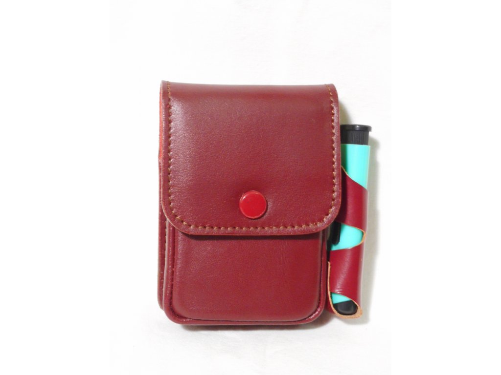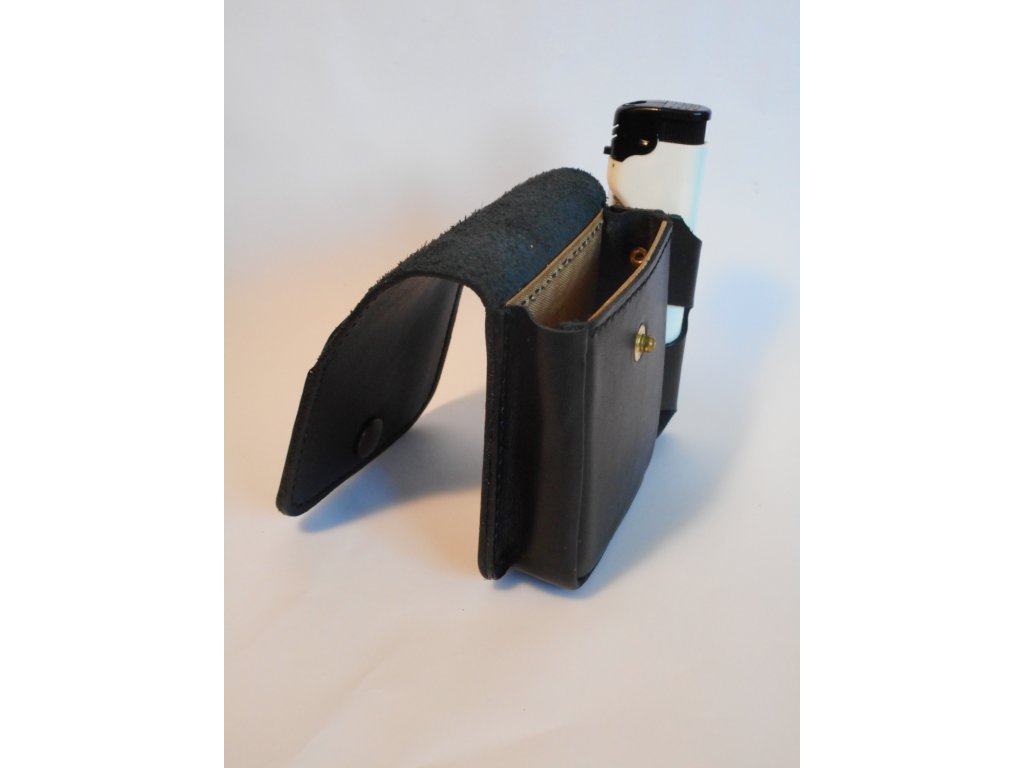 The leather case is designed for classic length cigarettes (length 8,50cm). You simply slide a paper pack containing 20 cigarettes into the case, with a small lighter pocket on the side of the case.