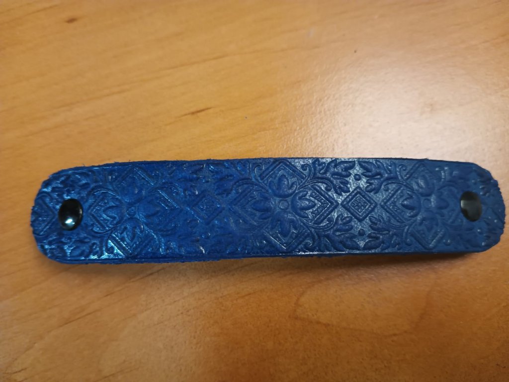 The size of the metal fastening at the extra long is 10cm. Leather trim size is 2 x 12cm